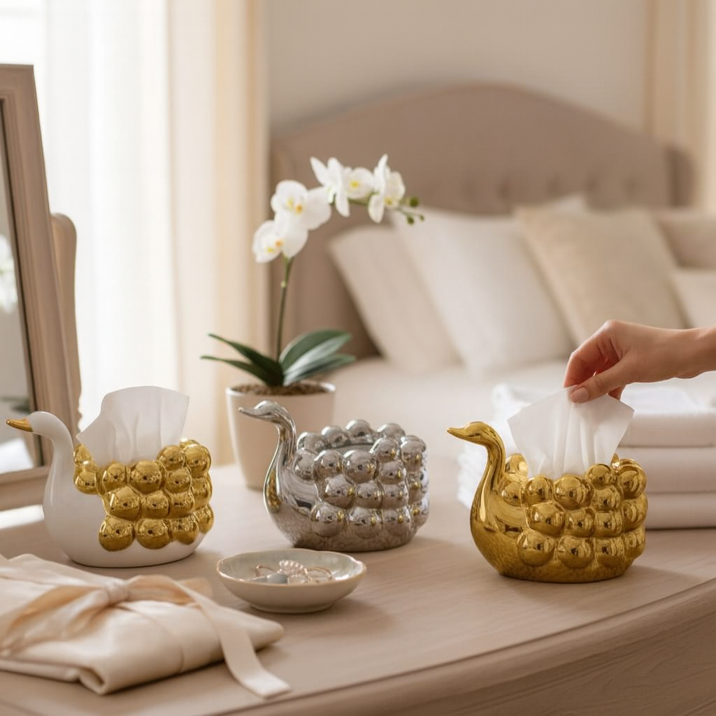 Boîte à mouchoirs design en forme de canard, finition luxe brillante.