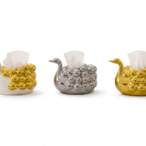 Son design unique avec texture en relief façon perles et sa finition brillante (doré, argenté ou blanc/doré) en font un véritable objet décoratif.