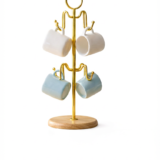 Sa structure dorée raffinée associée à une base en bois naturel permet de suspendre vos tasses tout en optimisant l’espace et en embellissant votre plan de travail.