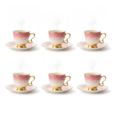 Service élégant comprenant 6 tasses et 6 sous-tasses au design rose et doré, parfait pour sublimer vos pauses café.