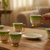 Be the first to review “Service à Café/Thé Vert & Doré – 6 Tasses + 6 Sous-tasses”