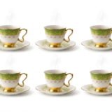 Service café/thé vert et doré – 6 tasses + 6 sous-tasses