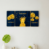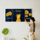 Le design tropical avec ananas et feuilles dorées sur fond bleu foncé crée un contraste chic et sophistiqué, idéal pour sublimer vos murs.